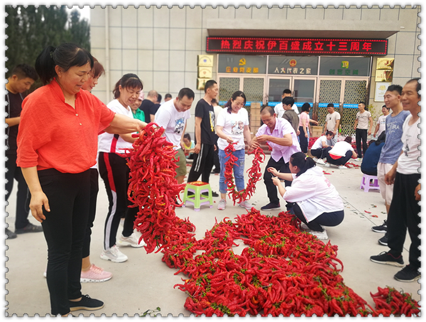 一串串火紅的辣椒,在員工的手中傳遞著幸福,溢滿心間的溫暖在大家的手中流淌著